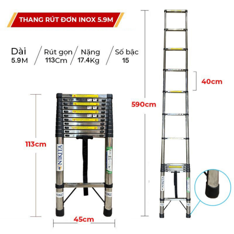 THANG INOX RÚT GỌN CHUYÊN DỤNG CHỐNG TRƯỢT NIKITA ID59