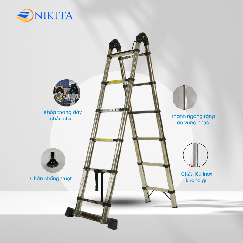 Thang Rút Đôi Inox Chữ A, Chữ I Chính Hãng NIKITA IDA34