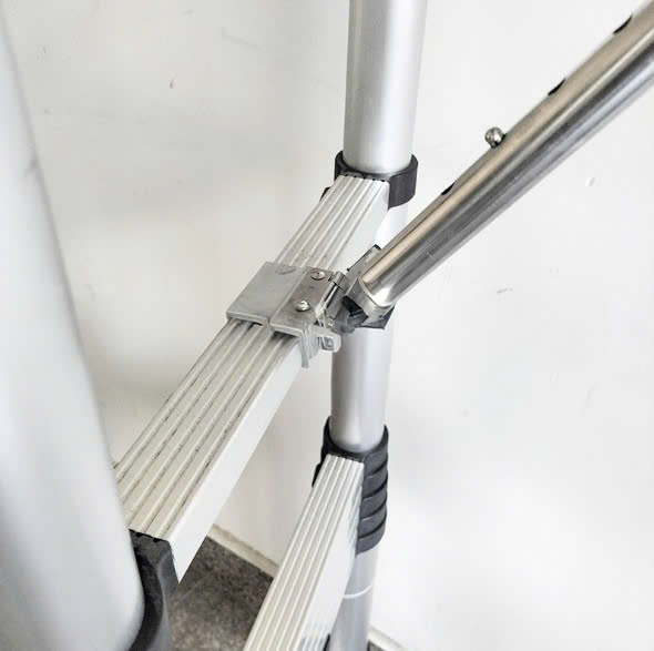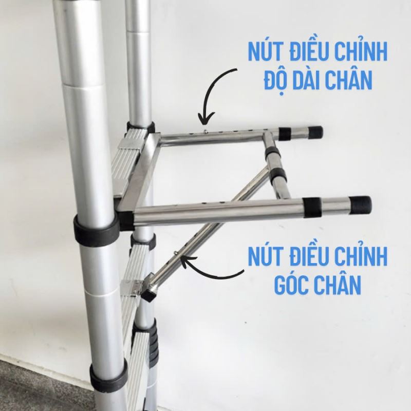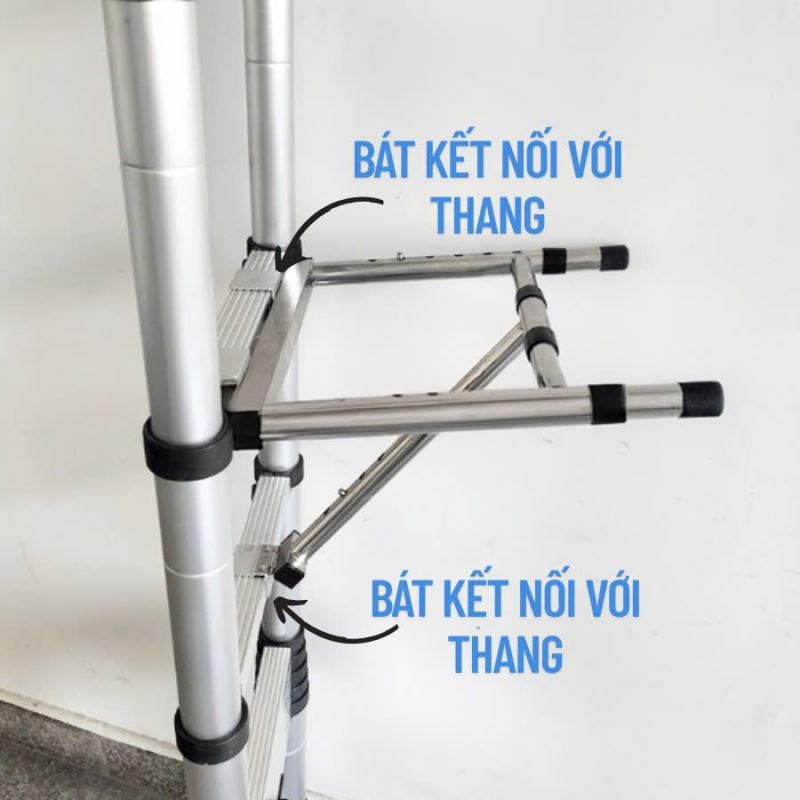 - Chịu tải trọng lớn: Với thiết kế này, phụ kiện hỗ trợ thang chịu được tải trọng lên đến 150kg, mang lại sự an tâm tuyệt đối cho người dùng, kể cả khi mang theo thiết bị làm việc.