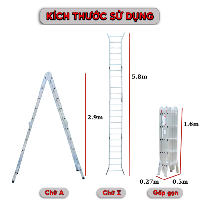 Thang nhôm gấp 4 khúc với chiều cao khi duỗi thẳng 5.8m chia làm 2 loại: A405 & T405