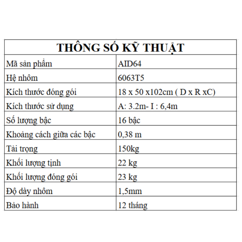 • KHOÁ THANG: Thang nhôm khóa tự động khi mở đến cữ tự động khóa sập lại. Thiết kế mới giúp tăng độ bền sản phẩm, đồng thời tăng độ khỏe, giảm độ rơ, võng khi sử dụng dạng duỗi thẳng chữ I.