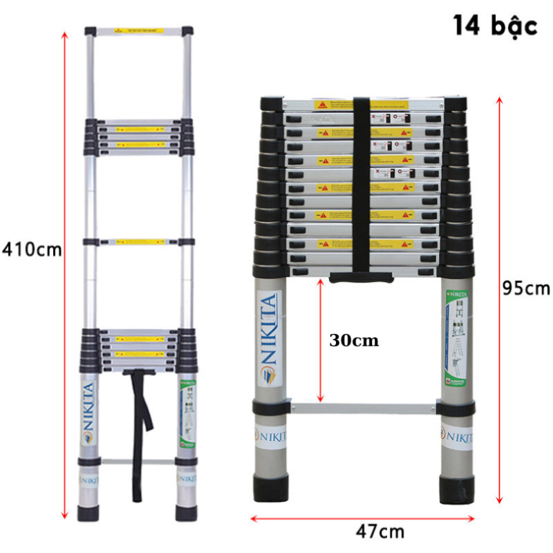 •Thang nhôm rút đơn Nikita có thể gấp gọn và dễ dàng cất giữ ở bất cứ đâu trong ngôi nhà của bạn, trong cốp xe hoặc vận chuyển bằng xe máy thay thế cho thang tre cồng kềnh.